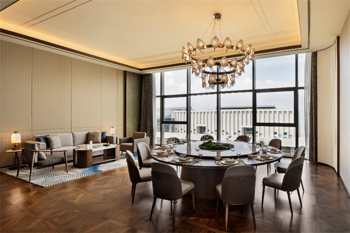 为迎接周年庆与秋季到来,悦厨中餐厅特别焕新秋季新菜牌。菜单以淮扬菜系为基础,创新融合徐州本地特色风味,凝萃秋季节气食材的鲜美,打造兼具口感与颜值的特色菜品。餐厅设有临窗雅座与雅致包厢,食客可在品尝美食的同时欣赏彭城景致,沉浸式感受用餐氛围。