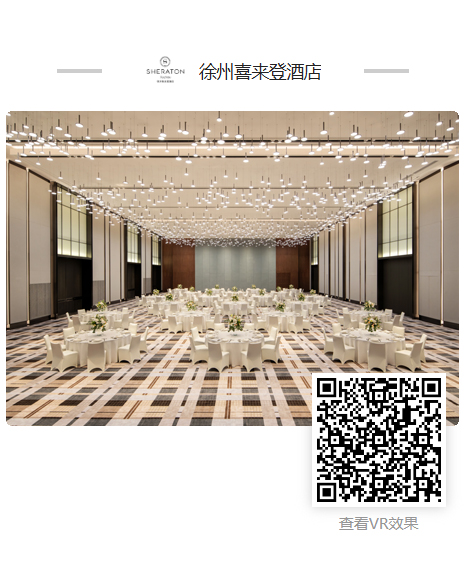 徐州喜来登酒店拥有超过 1000 平米的淮海宴会厅及多个多功能会议厅,可满足各类婚礼庆典、商务会议、节庆活动等需求。借助 VR 技术,客户在预订宴会场地前,无需亲临,即可通过沉浸式体验,全方位预览宴会空间的布局以及模拟场景,从而更高效地做出决策。如您通过 VR想了解更多宴会详情,可直接联系酒店宴会销售孙经理18051360070,徐州喜来登酒店期待为每一场宴会活动赋予独特记忆,助力客户实现 “理想宴会” 愿景。