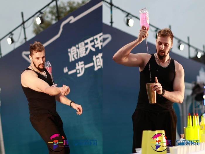 来自波兰调酒师的鸡尾酒花式调酒,更为现场带来充满激情的动感节奏和酷劲十足的绚丽酒款呈现!彩色的调酒杯和酒瓶在调酒师的身前身后来回旋转、飞舞,画出一道道美妙的弧线,在魔法的召唤下跳起神奇的空中舞蹈,台下的小朋友们都看得目不转睛。当调酒师亮出杯沿飞接酒瓶、手臂悬停酒杯,吧勺悬停高脚酒杯等绝活时,现场更是掌声不断,嗨爆全场。