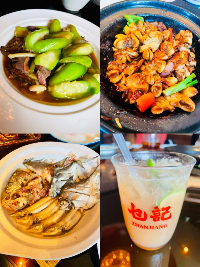 180天足日散养的湛江鸡,清晨仍在雷州半岛啄食沙虫,到了晚上就能抵达乜记饭店的桌上;硇洲岛的吊晒鱿鱼在炭火上卷曲成风帆形状,与手打墨鱼饼碰撞出浪涌般的鲜甜;就连一碟辣炒花甲都藏着玄机,当阳江豆豉的浓醇裹住湛江海域的矿物质咸香……