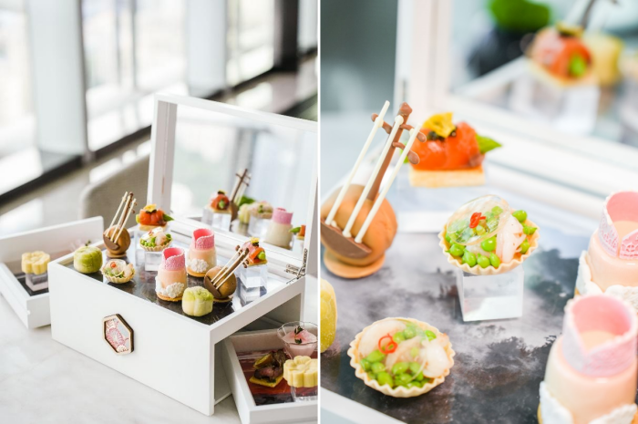 景迈山位于云南省普洱市澜沧县,现存18万亩古茶林,其2023年被联合国教科文组织正式列入《世界遗产名录》,成为全球首个以茶文化为主题的世界文化遗产。深圳中洲万豪酒店本次“景迈茶韵 · 茗香午后” 主题下午茶,汲取云南景迈山古树茶之灵感,匠心打造八款创意茶点,包含五款甜点与三款咸点,将千年茶韵融入现代美馔。杏仁玫瑰奶冻,以粉嫩之姿呈现,口感嫩滑,韵味清雅;燕窝绿豆糕作为万豪中餐厅的明星产品,此番被特别纳入下午茶序列,尽显中式甜品的精髓。造型别致的山药开心果糕口感细腻绵密,开心果的微甜清香娓娓道来。此外,樱桃酸奶蛋糕与百香果万豪芝士蛋糕两款西式经典,则以明快的酸甜节奏与浓郁奶香,丰富了味觉层次。茶叶鹌鹑蛋低温牛肉、茶香自制三文鱼配鱼籽酱以及油浸大虾蜜豆茶汤啫喱,三款咸点创意之作荤素搭配,在咸香回味中融入茶元素,余韵悠长。