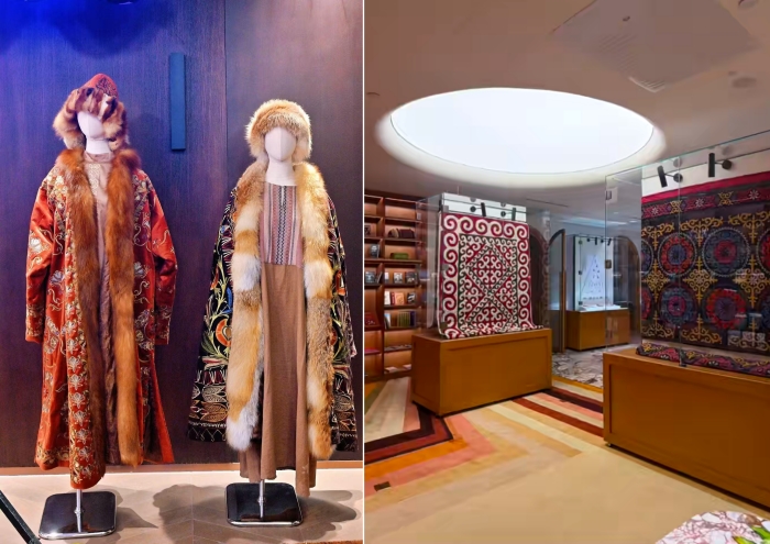 Sandyq餐厅的设计更加深化了文化体验。餐厅内的空间设计采用博物馆式陈列,历史文物与现代设计元素交织,展现从手工制品到草原美学的生活智慧。