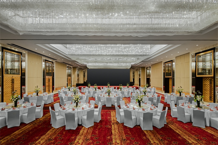 酒店拥有多规格婚宴场地,宴会会议面积超2,000平米,包括不同规格的4个宴会厅和3个多功能厅,满足不同规格需求。723平米的无柱式台州宴会厅位于酒店3楼,层高6米,可容纳600人。