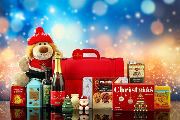 经典圣诞礼篮包含:经典丽思红色礼篮、酒店小狮子——中号、谢尼气泡酒、意式潘娜托尼面包、歌帝梵松露巧克力、帝怡耶加雪菲咖啡豆、爷爷农场肉松、爷爷农场牛油果油、英国进口曲奇饼干、圣诞香薰蜡烛等礼品。