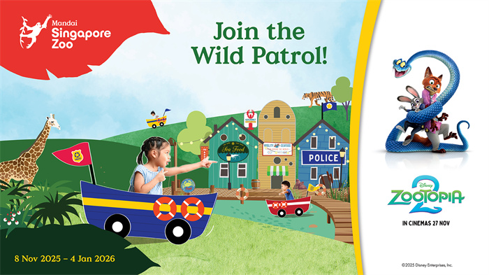 2025年11月8日至2026年1月4日期间,新加坡动物园联动迪士尼《疯狂动物城2》,独家呈现野趣巡逻冒险之旅。小朋友们将与尼克和朱迪一同执行任务,探索未知区域的同时,解锁趣味互动与自然探险的双重乐趣。通关成功还将收获限定证书与徽章,让这场冒险之旅更具纪念意义。