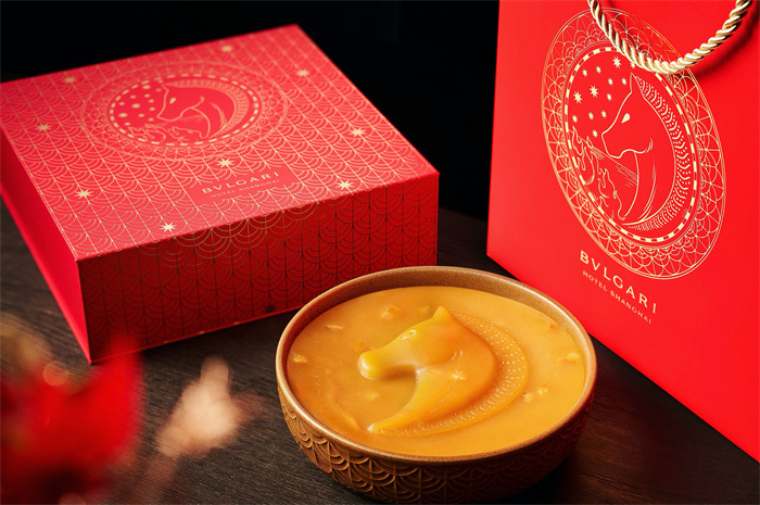 传递节日祝福,将温润年意携归珍藏。酒店秉承匠心工艺,浓情臻献板栗金桔年糕,板栗的绵密甘润融合金桔的馨香,勾勒一抹年节滋味与隽永祝愿。宝格丽甜品店诚献生姜红枣、红豆陈皮两款新春限定手工巧克力,灵感结合骏马贺岁之姿与宝格丽珠宝DIVAS'DREAM的经典图腾,巧艺雕琢,烘托春节的脉脉喜悦。更有包含宝格丽特调红茶、帕德诺蒂菈红葡萄酒等臻礼的新年礼篮,为欢聚时光再添一缕绵长温情。