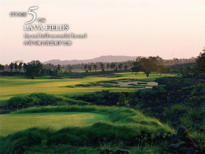 独有的天然矿沙坑与万年熔岩石不规则地布满球场。一片广角平原,两旁稀疏的树木,尽显荒原气质,让视野更辽阔。平原上的沙与熔岩完美融合,不愧为举世无双的球场奇观,是挑战性极强的国际赛事球场。