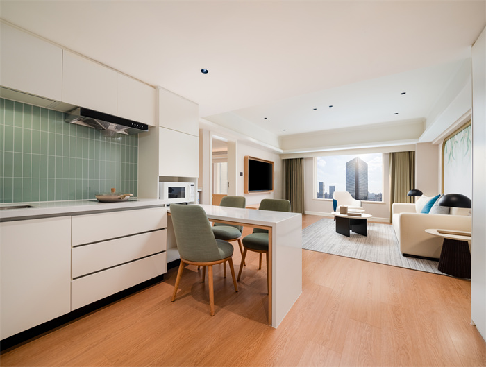 上海虹桥瑞士酒店公寓拥有190间设计精致的客房及套房,均配备完善的生活设施与灵活办公空间,为长期驻沪人士打造融合瑞士生活方式的理想居所。酒店公寓采用现代设计,主打瑞士简约元素,呈献高效且轻松的服务,为商务及休闲旅客带来匠心传承、摩登无压、悦心怡情的入住体验。每间客房都配备由创新技术打造的瑞士酒店床品体验,助力完美睡眠,配合采用瑞士植物精油制成的Pürovel洗浴用品,确保宾客能够尽享焕活身心的可持续健康体验。