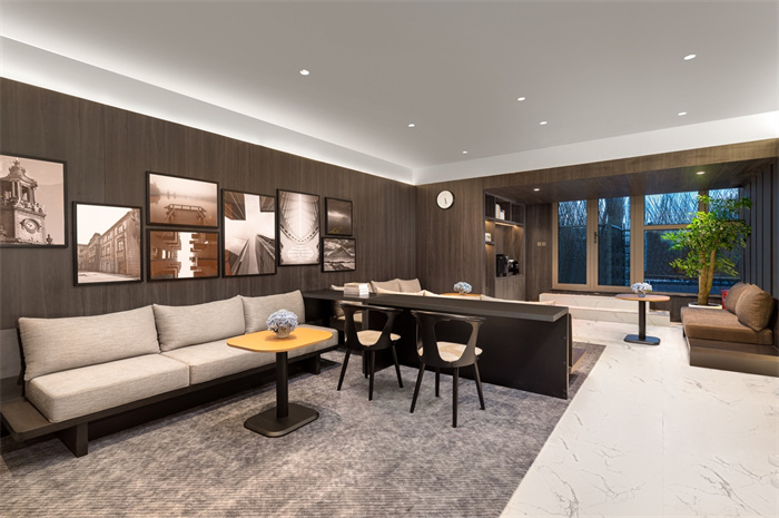 宽敞的社交空间规划着重关注人性化体验,最大限度地利用了空间和功能。开放式的休闲廊与餐厅区域保持彼此的通透与联接,提升了空间的张力。