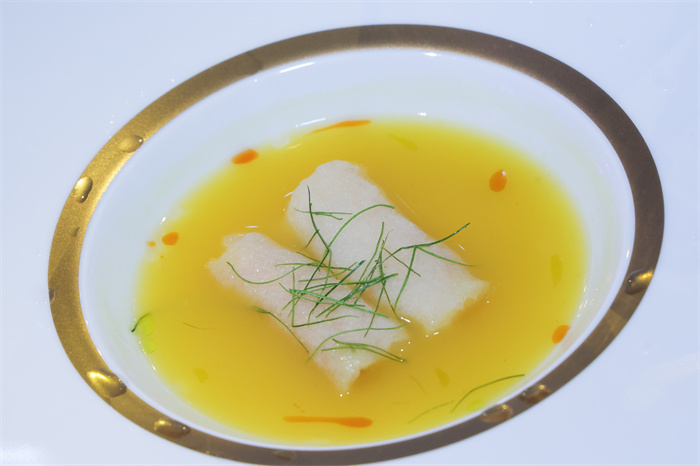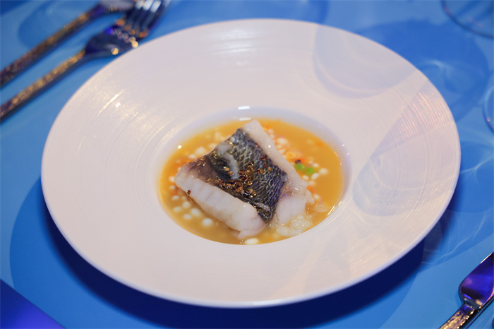 新濠天地摩珀斯天颐呈献的“黄花鱼、蟹黄蛋白珠、绍兴酒”
