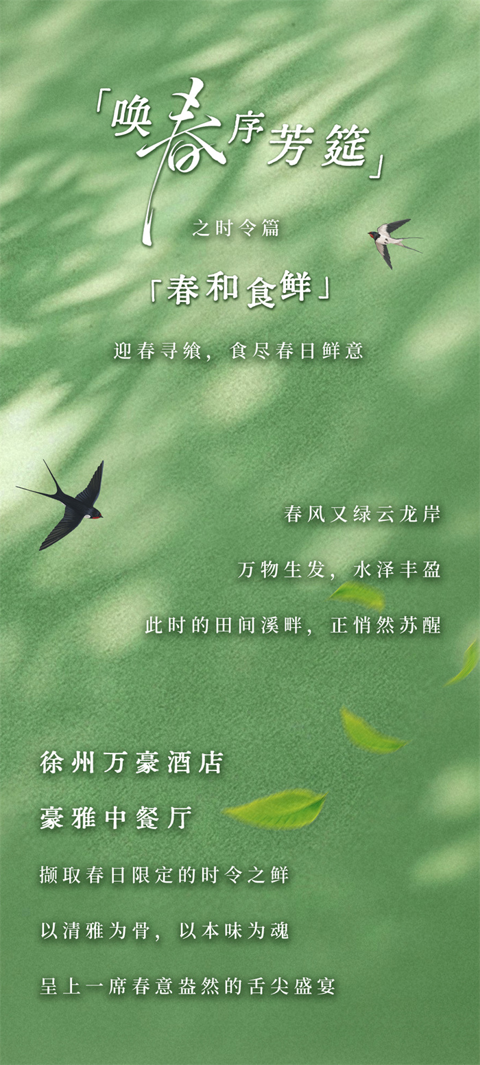 徐州万豪酒店豪雅中餐厅撷取春日限定的时令之鲜,以清雅为骨,以本味为魂,呈上一席春意盎然的舌尖盛宴。