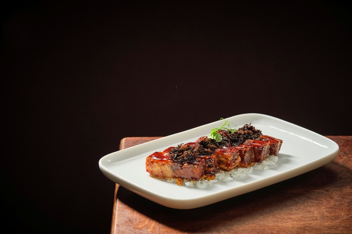 金华火腿土豆春蚕饭是一道将浙江食材精髓与时令风物融合的应季主食。主厨将香米、鲜笋丁与小土豆同蒸转入砂锅后加入笋衣、蚕豆及金华火腿慢焗,其风味核心来自金华火腿经蒸煮后渗出的咸香脂香,为米饭注入醇厚的底蕴。而春蚕豆的清新豆香和粉糯质地,在咸鲜基调中跳脱出一抹属于春天的清甜与脆嫩。