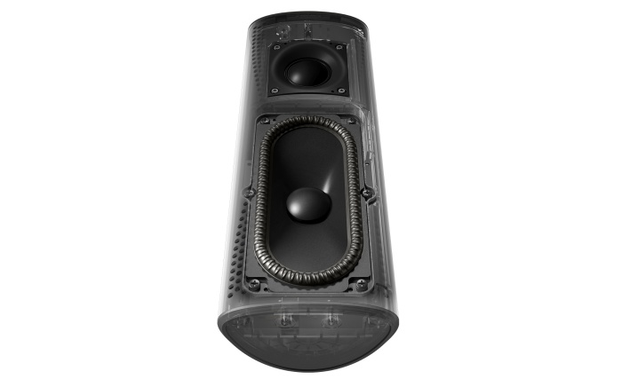 Muo 以 KEF 屡获殊荣的扬声器工程技术,重塑便携音频的性能表现。内部创新搭载大尺寸跑道型驱动单元,通过精密结构设计实现振膜高效运动,在产生纯净声波气流的同时,显著降低失真度。其褶皱结构源自 KEF KC62 和 KC92 超低音扬声器的 P-Flex 悬边技术,可有效抵抗内部气压,从而根据音频信号精确控制振盆的振动。