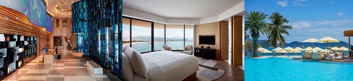 作为大中华区的首家傲途格精选酒店,三亚山海天大酒店,傲途格精选以梦幻的光影线条和海洋艺术装置,诠释热情时尚的海岛“印记”。大堂的蓝色玻璃幕墙、高悬的鱼群造型吊灯及以珊瑚礁为灵感的休息区营造梦幻海底意境,客房全景露台及顶楼酒吧旁的无边泳池,让宾客在碧海蓝天之间尽享浪漫度假时光。