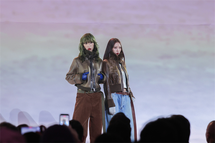 · 她时代趋势:这是属于“她们”的时代,也是属于力量的轮廓。挺括的肩线与垂坠的裤型构建出理性与柔性的平衡,剪裁如直线条构筑的铠甲,勾勒出现代女性的清醒姿态。发色延展出烟熏粉棕、陶土灰与青铜的层次,如雾光般包裹温度。黑白灰的极简与雾色光泽的柔化交错成诗,她们不以性别取悦,而以独立与温度并存的存在感,诠释当代女性的权力美学。