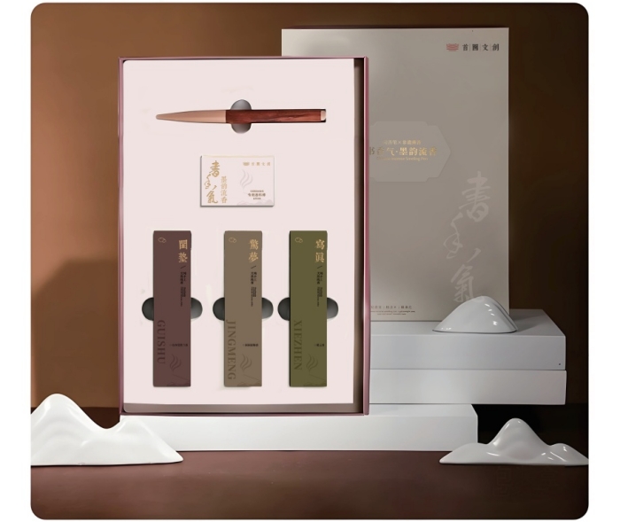 图:“书香气·墨韵流香”闻香笔套装,源于首都图书馆馆藏 明·万历二十六年《牡丹亭还魂记》惊梦图