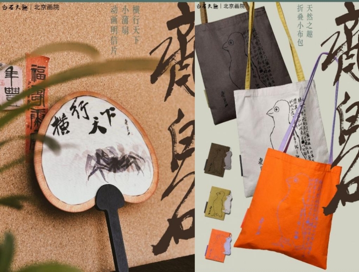 图:北京画院“横行天下”动画明信片、“天然之趣”折叠小布包