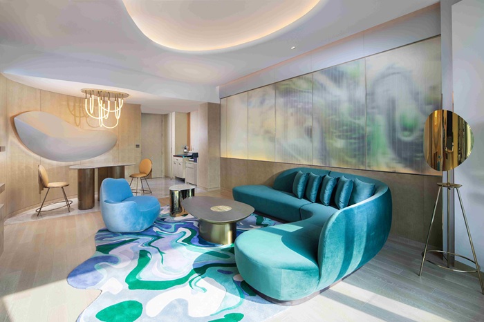 · 整体设计色调搭配灵感汲取于被联合国教科文组织列入“世界文化遗产”的独特自然景观——九寨沟国家公园,中性大地色与明亮的绿松石色、紫罗兰色和洋红色等炫彩装饰风格相映成趣;