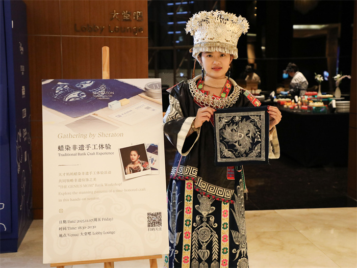 2025年11月6日,上海嘉定喜来登酒店邀请到了贵州苗族张晓丹老师,为30位宾客带来一场独具特色的蜡染非遗手作体验,受到了宾客们的一致好评。嘉定喜来登酒店正积极践行‘会聚喜来登’的品牌承诺,将非遗文化融入旅居日常,未来,更多承载祝福的‘大小喜事’将持续在这里上演与见证。