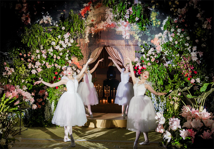 婚礼秀以优雅的芭蕾舞蹈表演为开篇,在沉稳而静谧的灯光中呈现“主角登场”的象征性序章。主持人通过主题讲解,将“人生剧本”的概念与婚礼仪式艺术相结合,引领现场宾客进入沉浸式叙事氛围。婚礼秀开场后,北京丽思卡尔顿酒店总经理阿方索先生登台致辞。他首先向到场的准新人、媒体及合作伙伴致以诚挚欢迎。阿方索先生表示,在每一段爱情的故事里,新人都是无可替代的主角。我们希望通过这样的婚礼秀,为新人呈现更具启发性的婚礼美学,也希望在未来的婚礼旅程中,以丽思卡尔顿的卓越品质与细致服务,为各位主角增添值得珍藏的动人片段。秀场环节中,多组模特依次展示经典婚礼场景及高定婚纱,结合秋冬绿植花艺、暖金灯光与精致布景,勾勒从仪式细节到浪漫情绪的全流程画面;同时,美薇亭婚礼策划团队亦现场分享婚礼趋势与筹备建议,并由本次婚礼秀主创团队讲述设计灵感,帮助准新人进一步理解婚礼美学与空间叙事方式。