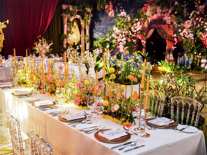 本次婚礼秀以“每一位走入婚姻的人,都在书写属于自己的人生剧本”为核心理念,通过沉浸式双舞台设计、自然花园式的秋冬花艺布景与戏剧化光影氛围,呈现出一场兼具艺术美感、仪式情怀与情绪叙事的婚礼体验。
