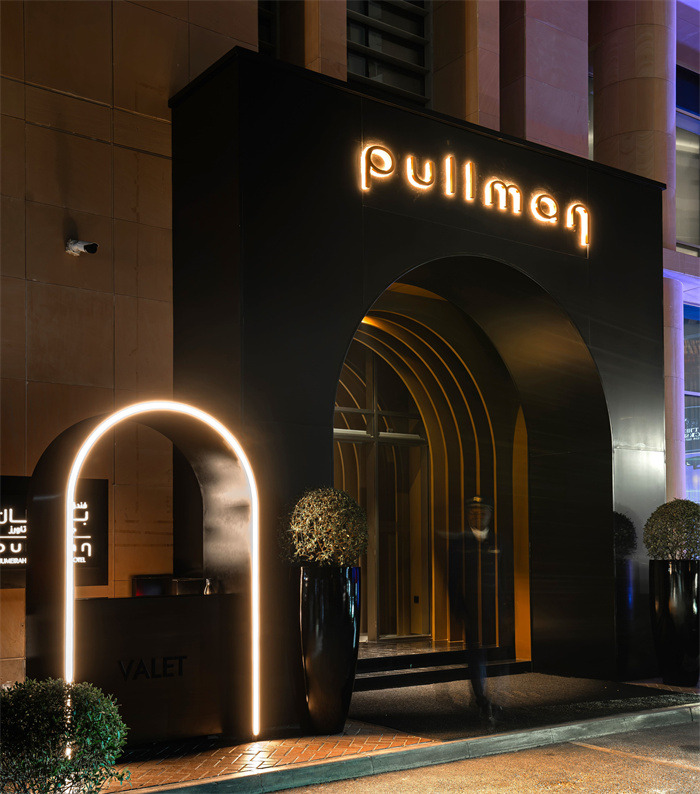 本次品牌焕新中的标志性表达之一是 “铂尔曼隧廊(Pullman Portal)”设计,其设计灵感源自铂尔曼品牌开创之初在铁路旅行中的隧道元素。每一座隧廊皆是极具张力的建筑符号——既保持全球统一的辨识度,又在材质、形态与色彩的选择上进行本土化演绎。迪拜朱美拉湖塔铂尔曼酒店已率先开启这扇入口,随后陆续开业的澳大利亚珀斯机场铂尔曼酒店与新西兰汉密尔顿铂尔曼酒店亦将携这一标志性设计亮相新市场。随着全球酒店焕新计划的推进,更多“铂尔曼隧廊(Pullman Portal)”将陆续向宾客敞开。