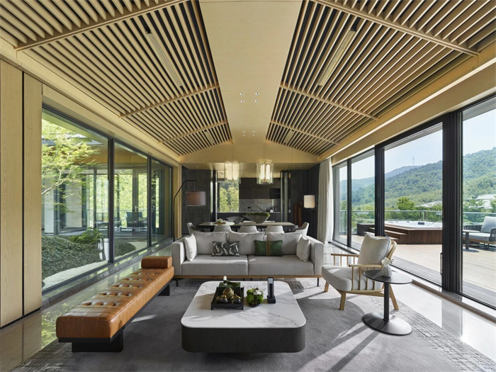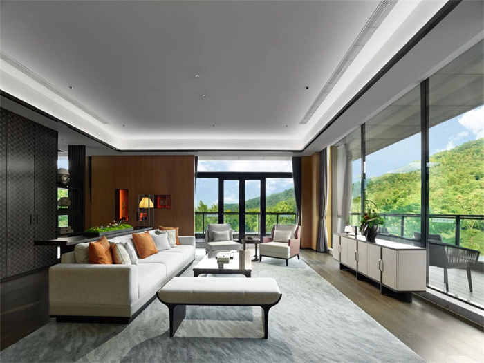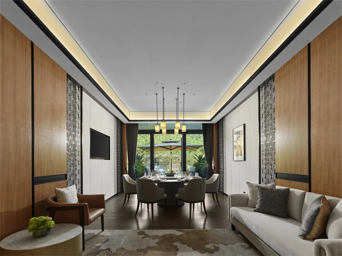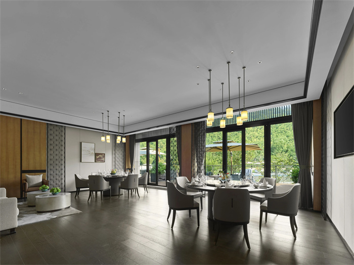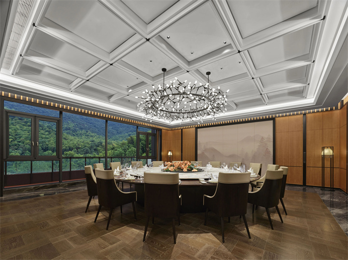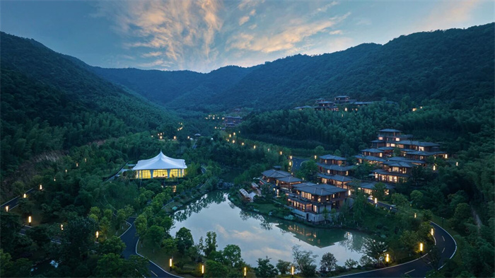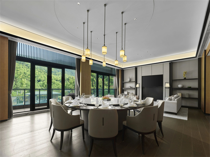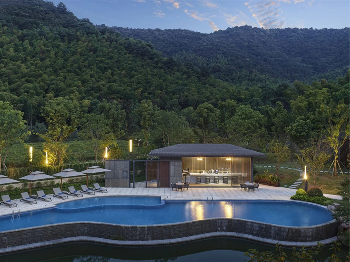 酒店拥有9幢富有东方韵味的别墅和宅院,设计灵感紧扣山林、河流、溶洞等生态野趣,施以现代美学笔触,与自然浑然天成,为向往归隐田园、疗愈身心的宾客构建出一方桃源私境,是旅游度假、休闲康养、山地运动、亲子出游,或举办山林浪漫婚礼和私人定制活动的理想目的地。