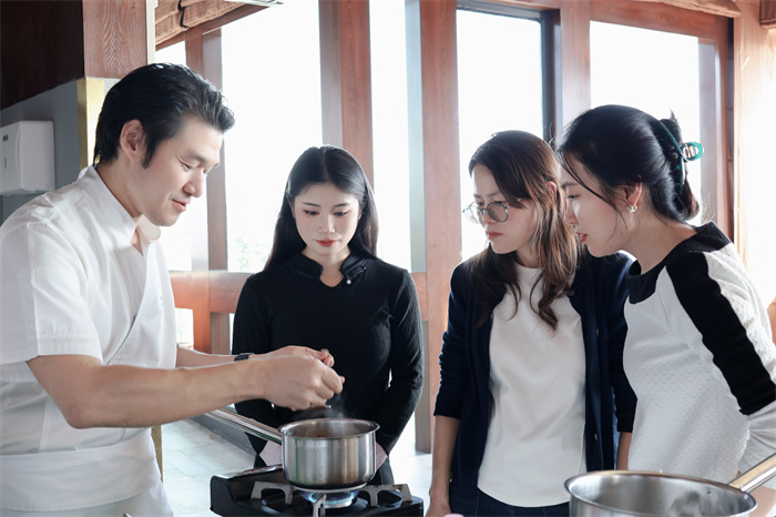 为呈现地道的高端泰式风味,昆明索菲特大酒店早在数月前便开启 “跨国寻味之旅”—— 酒店总经理亲率酒店团队远赴曼谷,与蓝象集团传奇女主厨 Nooror 展开深入的技艺交流。从泰式宫廷料理的古法烹制秘艺,到酱料调制的“香料黄金配比”,双方团队逐道菜品拆解研讨、逐味细节反复打磨,最终将数十种泰国原生香料的“时光风味”完整带回昆明。“我们希望让春城食客足不出境,便能品味到泰国宫廷宴席的正宗精髓。”酒店行政总厨浩哥表示。