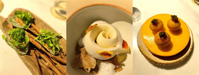 当天的晚宴菜单充分体现了三位主厨创意巧思与熟稔技法,法式传统与亚洲多元风味交相辉映,演绎了一曲充满现代感的传统风味的精彩乐章。