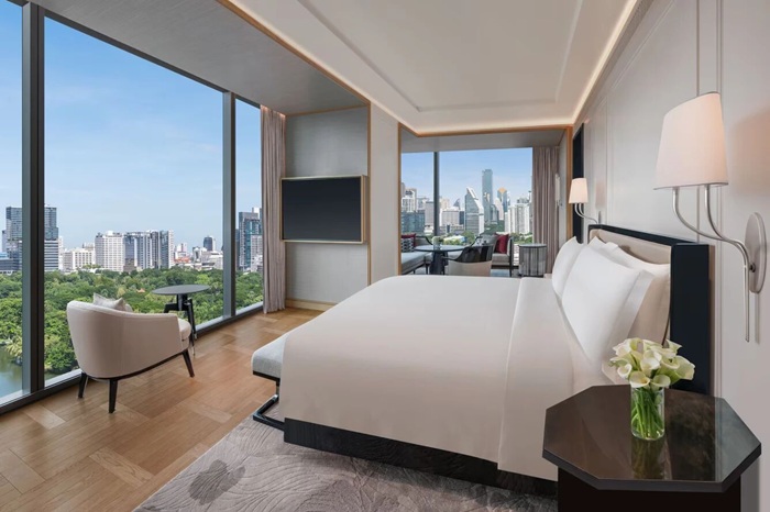 曼谷丽思卡尔顿酒店坐落于曼谷中心的One Bangkok的一座高216米的综合性商业大楼,可俯瞰伦披尼公园静谧的草坪与湖泊。酒店拥有Duet by David Toutain、Lily's和Caleõ三家卓越餐厅,以及一个奢华酒廊,为宾客提供多样化的美食选择。同时,酒店拥有260间客房与套房,多数客房配有私密露台或阳台,能从落地窗前尽览葱郁广阔的伦披尼公园美景。