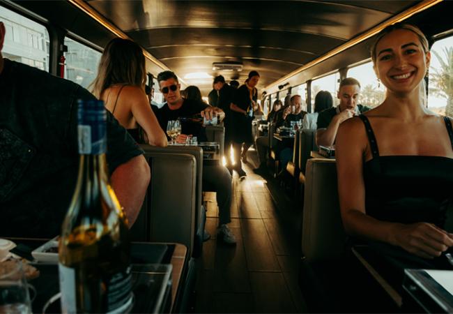 游客将在巴士宽敞的上层用餐区内,一边品尝精心挑选的米开朗基罗奖(Michelangelo Award)获奖葡萄酒,一边享用由行政主厨掌勺的 奢华大餐。菜单灵感源自开普敦的多元文化,选用西海岸的岩龙虾与卡鲁的羊肉等最新鲜的本土食材。窗外是染着落日金光的十二门徒峰和坎普斯湾层层叠叠的浪花,盘中则是东西方交融的味觉艺术。当夜幕降临,车内氛围灯亮起,这趟约 旅程不仅是一次味蕾的旅行,更是与城市灵魂的对话。在下车时,主厨有时还会贴心地准备一份带有南非特色的小礼物(如南非国宝茶),让这份属于开普敦的独特味道伴随着美好的记忆一直延续。