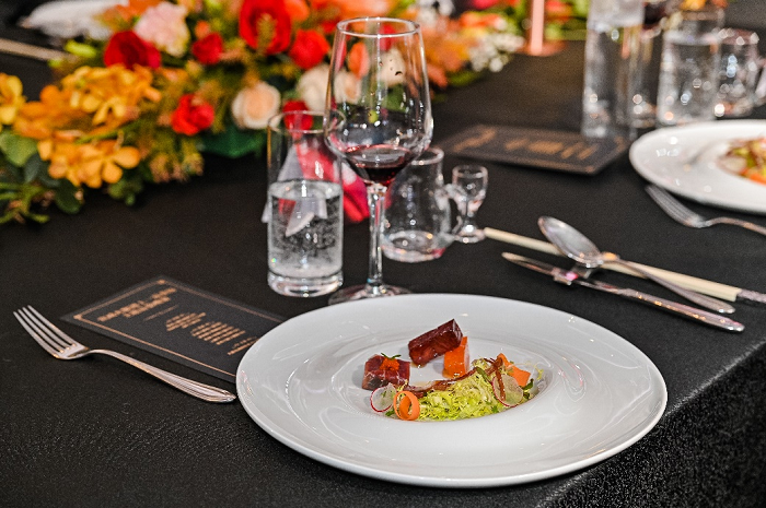宣威市工商联主席余红梅女士、宣威火腿产业服务中心主任符稳玺先生、宣威火腿制作技艺传承人管升阔大师、谦宁(昆明)管理咨询有限公司总经理徐安宁先生,以及上海万达瑞华酒店总经理李红女士,共同执手进行了切火腿及祝酒仪式。来自社会各界的嘉宾们,不仅在现场了解了宣威火腿的生产过程及产区价值,也亲口品尝了感受了宣威火腿搭配贺兰山东麓葡萄酒的绝妙滋味。
