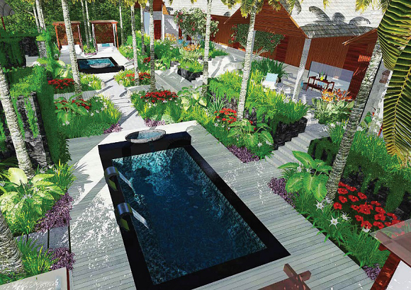 Nika水疗中心被大片绿植环抱,或深或浅的绿流动舒展,远远望着仿佛是童话世界的秘境。这里配备了六间精粹理疗室,每间都有树冠遮蓬,从开阔的厅廊走过,便能看到理疗室中央的按摩泳池和花园,顿感心旷神怡。