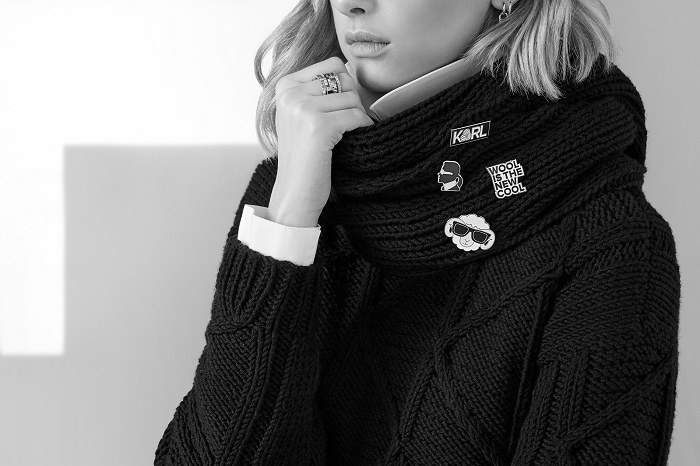 每一个「Knit Karl kit」编织礼盒将包含一款由Lagerfeld所设计的中性产品针织样板, 包括毛衣、帽子、头巾或围巾,另备有织针、纱线、个性化的胸针和编织说明书。纱线由澳大利亚纯正精纺美丽诺羊毛制成;除了 100%纯天然之外,其更具备可生物降解和可再生使用的环保优势。