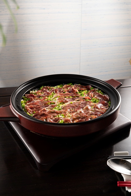 金华火腿土豆春蚕饭是一道将浙江食材精髓与时令风物融合的应季主食。主厨将香米、鲜笋丁与小土豆同蒸转入砂锅后加入笋衣、蚕豆及金华火腿慢焗,其风味核心来自金华火腿经蒸煮后渗出的咸香脂香,为米饭注入醇厚的底蕴。而春蚕豆的清新豆香和粉糯质地,在咸鲜基调中跳脱出一抹属于春天的清甜与脆嫩。