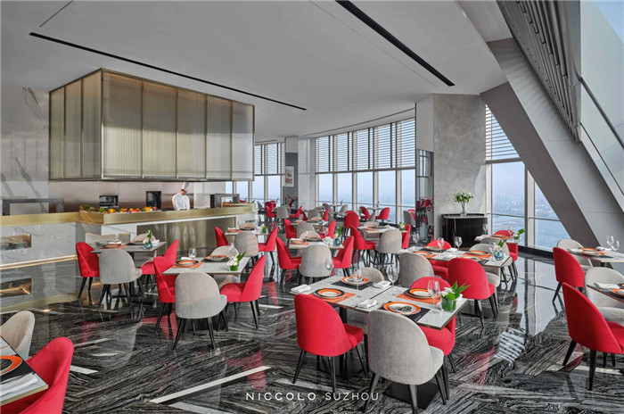 欣厨是一个集中西烹饪之所长、兼容各国风味的特色餐厅,为宾客提供活力早餐、商务午宴、中西式零点菜肴。餐厅位于115层,可观赏天际美景及俯瞰苏州城景。欣厨餐厅环境高雅有格调,是宾客浪漫之约,乐享中西式美食的不二之选。
