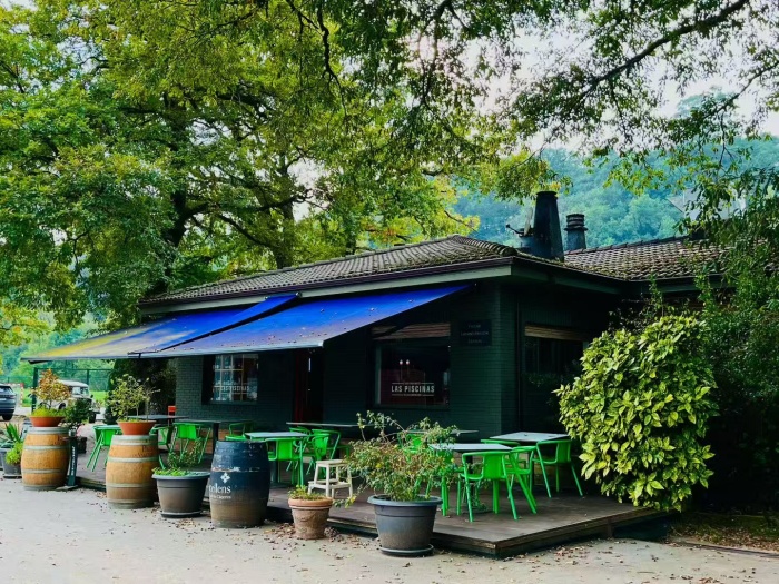 Las Piscinas de Villacarriedo餐厅位于西班牙坎塔布里亚的Villacarriedo镇,被一片绿色山体包围着,门前落满了一颗颗橡木果。