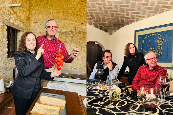 要在这么个美丽的地方,跟Pilar一起上一节Cooking class,是一件多么美妙的事情,尤其是学习加泰罗尼亚的国民美食番茄面包的制作,大家系上黑色的围裙,一起动手,Pilar先做示范,我们跟着做,整个氛围是如此快乐和谐。在异国他乡,吃到亲自动手制作的美食,是开心和感动的,尤其是吃到了盐焗地中海红虾(这种食材在当地可不便宜),满嘴都是阳光的味道。