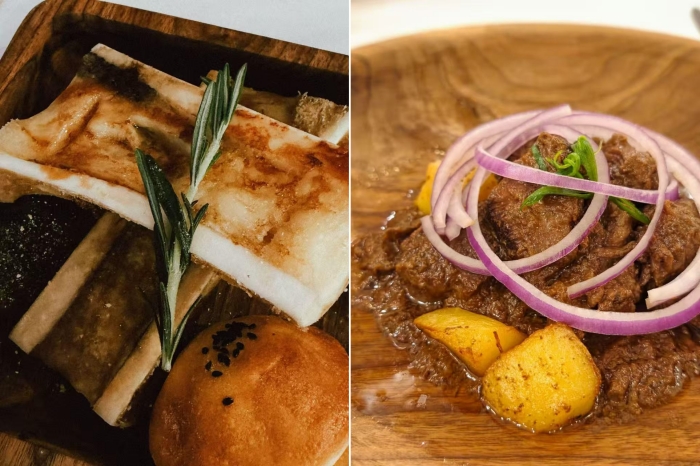 Sandyq餐厅的菜单更是还原哈萨克美食精髓:从咸香马肠、酥脆包尔萨克到丰盛的马肉纳仁,每道菜都与哈萨克族传统烹饪一脉相承。餐厅还特别推出了保留哈萨克本土风味的中国口味定制菜单,值得关注的特色菜包括Kostura——以烟熏马肉、茄子配库尔塔酱制成的传统沙拉,佐以时令蔬菜与手工酸奶;另有 Tabak-nan,传统肉食搭配哈萨克马奶酒,皆为传统与创新的美妙融合。