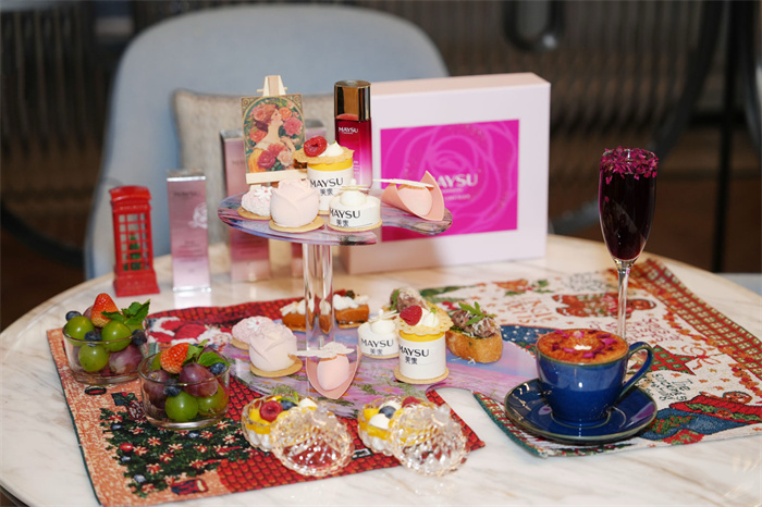 庆典在午后拉开序幕。酒店与来自自然堂集团的中国科技美妆高端抗老品牌美素联袂呈现的“小玫瑰千金”主题下午茶沙龙,巧妙融合了视觉美学与味觉艺术。活动现场不仅设有美肤分享与体验专区,更由酒店厨师团队匠心打造了以玫瑰为灵感的系列法式甜点。此外,活动还通过玫瑰主题咖啡拉花演绎及互动等环节,将咖啡艺术与品牌美学生动结合,诠释了品质生活的多维内涵。