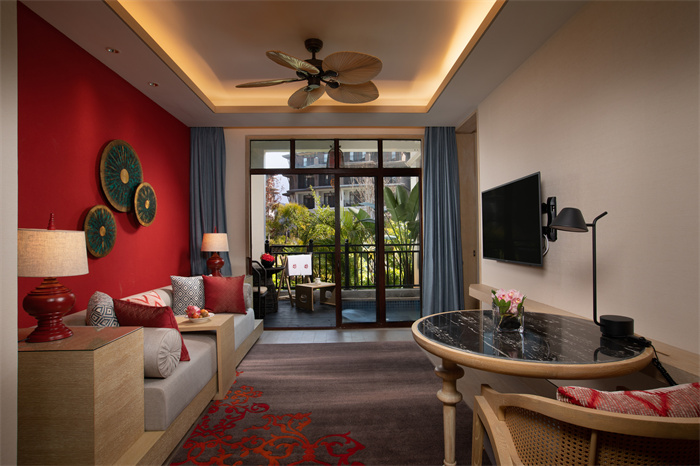 酒店供设有372间典雅舒适的精致客房、套房及独栋别墅,均隐匿于宁静的热带雨林之中。每间客房都设有宽敞的露台,宾客足不出户即可尽享酒店别致的雨林园景或泳池风光;部分套房及别墅更配备私人温泉泡池。傍晚时分,置身于勐巴拉套房的阳台,观赏夕阳缓缓西沉,更添无限浪漫情致。