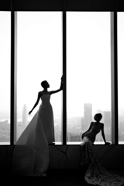 伴随乐章曼妙递进,模特身着定制婚纱款款步入舞台,一场由光影、材质与空间语境共同构成的婚礼美学演绎,仿佛由空灵梦境步入现实之中。莹白光幕与婚纱轮廓交织起伏,蕾丝刺绣的精致纹理、极简廓形的现代线条与层叠裙摆所延展出的轻盈张力,动静之间彰显非凡格调与隽永意境。
