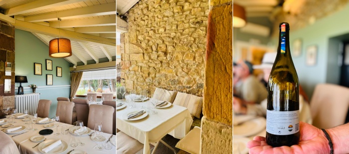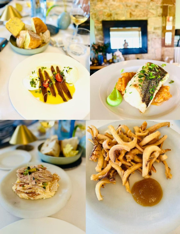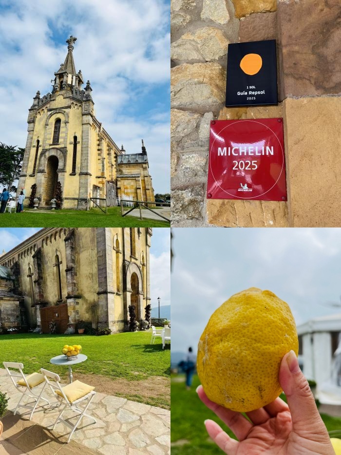 这是一家米其林餐厅,也是西班牙当地天然气公司评选的一星餐厅。很多人驾车过来吃饭,餐厅座位不多,教堂门口外专门搭了一个白色的帐篷,作为婚礼的用餐地之一,门口白色小桌上摆着一筐当地柠檬产的大个柠檬。