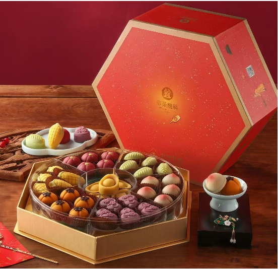 图:御茶膳房以礼食文化为念,推出寿桃造型糕点,寓意长寿富贵,福寿双全