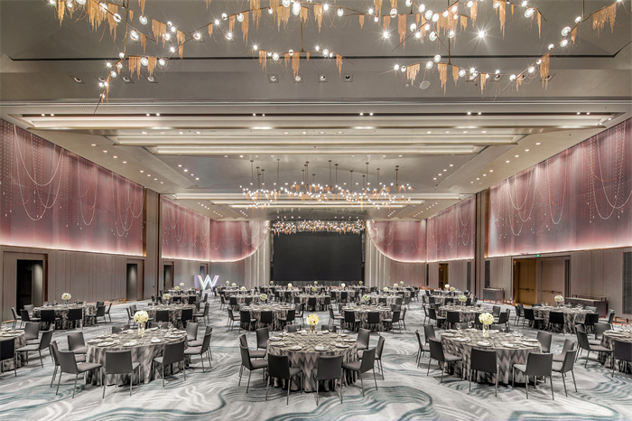 · 而以传统蜀锦中令人惊叹的花卉图案为灵感,一系列旋涡状的石质艺术品和超大型灯光设置,则引领宾客走入炫彩夺目的迎宾区域。