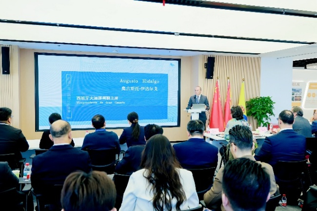 大加那利岛议会副主席兼基础设施及交通部长奥古斯托·伊达尔戈系统介绍了该岛的区位优势与产业竞争力。他指出,大加那利岛地处大西洋中心,是连接欧、亚、非、美四大洲的战略枢纽,长期以来不仅是中国远洋船队的重要补给站,也是中远海运等企业在北大西洋区域布局的关键支点。此外,岛上经济结构多元,在数字经济、绿色能源、生物医药与海洋科技等多个前沿领域具备显著优势,成熟的科技园区与健全的创新体系为开展国际合作奠定了坚实基础。