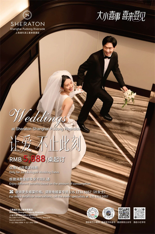 限时臻宠,为爱加冕。上海浦东滨江喜来登酒店特推限时预订礼遇,明年暑期档婚宴报价可低至5888元/桌起。即刻锁定酒店专属婚宴顾问,了解更多婚宴福利详情!