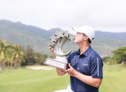 北京时间4月25日,“零零后”叶沃诚星期天在三亚亚龙湾高尔夫球会抓到10只小鸟,打出生涯最低杆:62杆,低于标准杆10杆,成功逆转,在男子中巡揭幕战:三亚精英赛实现职业首胜。